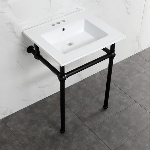 Kingston BrassKingston Sona VPB3917H0ST - New Haven 39-Inch Porcelain Console Sink with Stainless Steel Legs, White/Matte Black With a beautiful ceramic count...