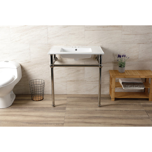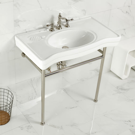 Kingston BrassKingston Tulare VPB28140W86 - Bristol 36-Inch Ceramic Console Sink with Stainless Steel Legs (8-Inch, 3-Hole), White/Polished Nickel With a beau...