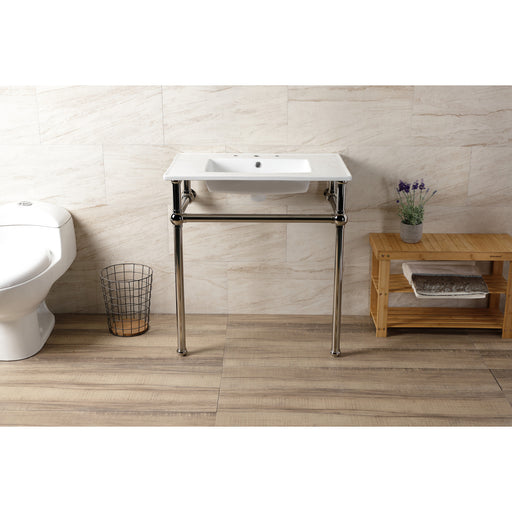 Kingston BrassKingston Heirloom KVBH31227W4B6 - Templeton 31-Inch Ceramic Console Sink with Brass Legs (8-Inch, 3-Hole), White/Polished Nickel With a beautifu...