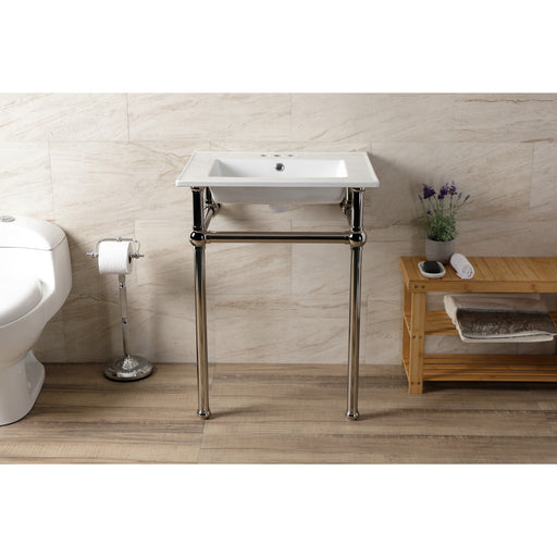 Kingston BrassKingston Heirloom KVBH25227W8B6 - Templeton 25-Inch Ceramic Console Sink with Brass Legs (8-Inch, 3-Hole), White/Polished Nickel With a beautifu...