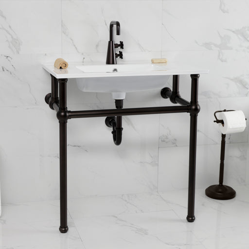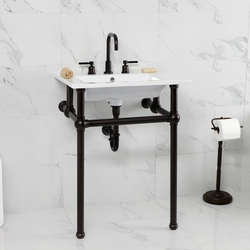 Kingston BrassKingston Heirloom KVBH25227W8B5 - Templeton 25-Inch Ceramic Console Sink with Brass Legs (8-Inch, 3-Hole), White/Oil Rubbed Bronze With a beauti...
