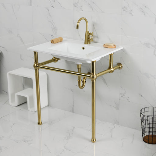 Kingston BrassKingston Heirloom KVBH312277 - Templeton 31-Inch Ceramic Console Sink with Brass Legs (1-Hole), White/Brushed Brass With a beautiful ceramic cou...