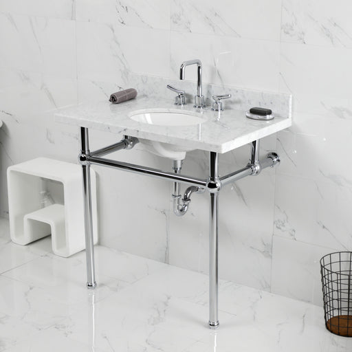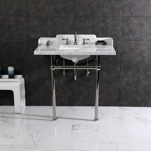Kingston BrassKingston Heirloom LMS36MBSQ6 - Pemberton 36-Inch Carrara Marble Console Sink with Brass Legs (8-Inch, 3-Hole), Carrara Marble White/Polished Nicke...