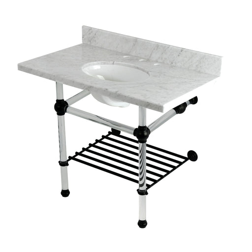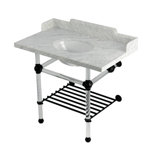 Kingston BrassKingston Tulare KVPB3630MAB0 - Templeton 36-Inch Carrara Marble Console Sink with Acrylic Legs and Shelf (8-Inch, 3-Hole), Carrara Marble White/Ma...