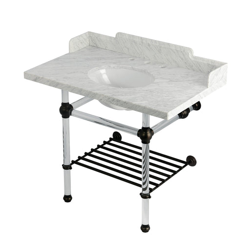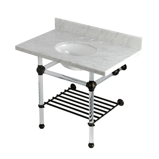 Kingston BrassKingston Tulare KVPB3630MAB5 - Templeton 36-Inch Carrara Marble Console Sink with Acrylic Legs and Shelf (8-Inch, 3-Hole), Carrara Marble White/Oi...