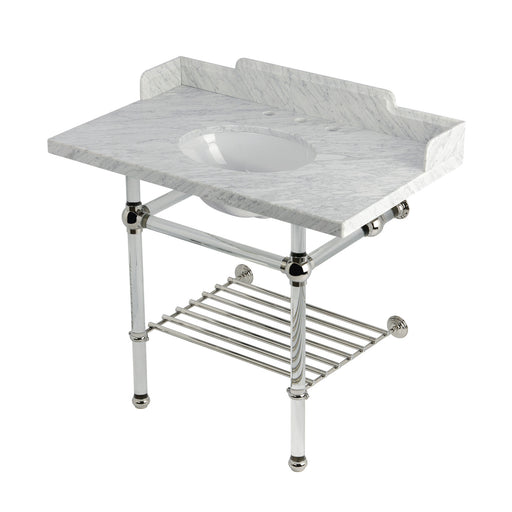 Kingston BrassKingston Tulare LMS3630MAB1 - Pemberton 36-Inch Carrara Marble Console Sink with Acrylic Legs and Shelf (8-Inch, 3-Hole), Carrara Marble White/Pol...