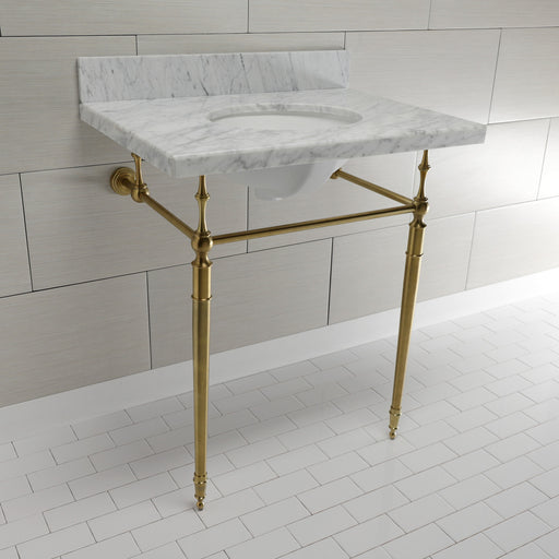 Kingston BrassKingston Heirloom KVPB3022M8SQ7 - Edwardian 30-Inch Carrara Marble Console Sink with Brass Legs (8-Inch, 3-Hole), Carrara Marble White/Brushed Bra...