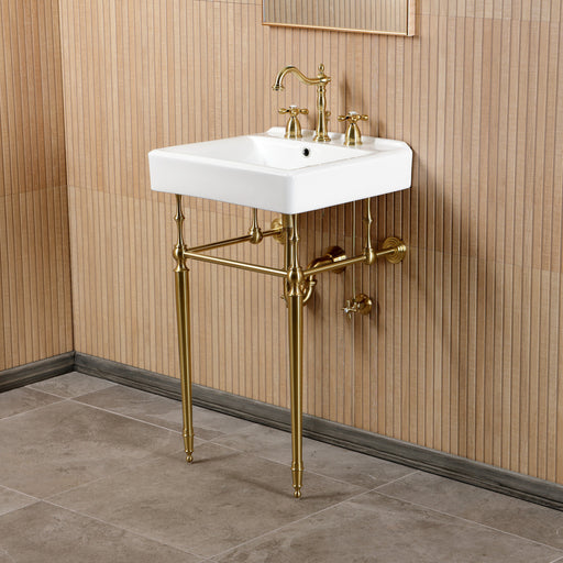 Original price $1,309.80 - Original price $1,309.80Original price $1,309.80$1,309.80$1,309.80 - $1,309.80Current price $1,309.80| /Kingston Heirloom KVPB30229W387 - Victorian 30-Inch Ceramic Console Sink with Stainless Steel Legs (8-Inch, 3-Hole), White/Brushed Brass