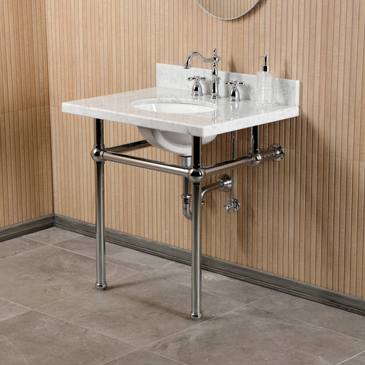 Kingston BrassKingston Heirloom CKVPB3030MBSQ8 - Templeton 30-Inch Carrara Marble Console Sink Set with Widespread Bathroom Faucet and Plumbing Trim Kit (8-Inch...