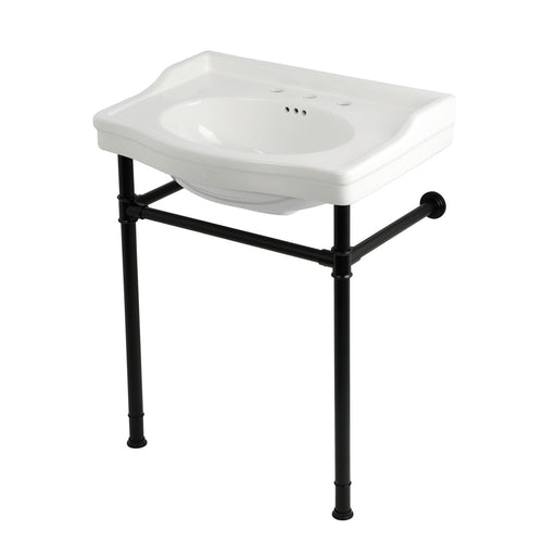 Kingston BrassKingston Heirloom KVPB30229W380 - Victorian 30-Inch Ceramic Console Sink with Stainless Steel Legs (8-Inch, 3-Hole), White/Matte Black Enhance y...