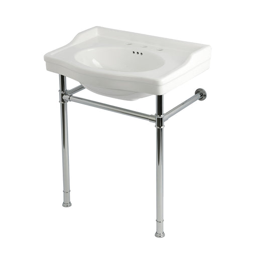 Kingston BrassKingston Heirloom KVPB30229W381 - Victorian 30-Inch Ceramic Console Sink with Stainless Steel Legs (8-Inch, 3-Hole), White/Polished Chrome Enhan...