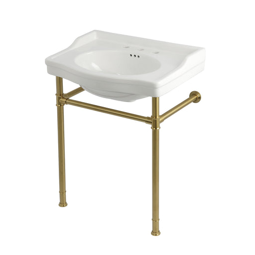 Kingston BrassKingston Heirloom KVPB30229W387 - Victorian 30-Inch Ceramic Console Sink with Stainless Steel Legs (8-Inch, 3-Hole), White/Brushed Brass Enhance...