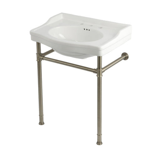 Kingston BrassKingston Heirloom KVPB30229W388 - Victorian 30-Inch Ceramic Console Sink with Stainless Steel Legs (8-Inch, 3-Hole), White/Brushed Nickel Enhanc...