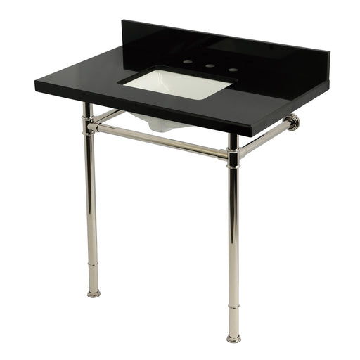 Kingston BrassKingston Tulare KVPK36227K8SQ6 - Imperial 36-Inch Black Granite Console Sink with Stainless Steel Legs (8-Inch, 3-Hole), Black Granite/Polished Ni...