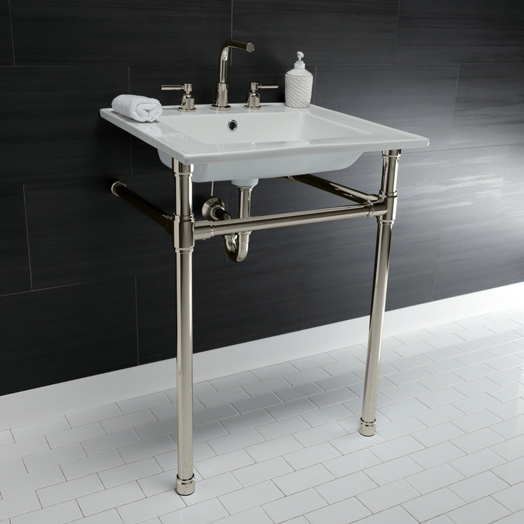 Dreyfuss KVPB25227W86 25-Inch Ceramic Console Sink with Stainless Steel Legs (8-Inch, 3-Hole), White/Polished Nickel