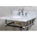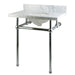 With a beautiful Carrara Marble counter top, this console sink set is a long lasting, durable, and elegant addition to your bathroom. A fabulous alternative where space is limited or tight, making them friendly for the whole family. With different shades and natural designs, otherwise known as veining, no two sinks will be alike. Also for your convenience, anti-slip rubber pads are included with the brass legs to ensure steadiness. Water supply kit, drain assembly, and the faucet are sold separately. Kingston's Carrara Marble tops are polished, but they are not sealed. Polished marble has a shiny surface and resists stains. Natural stone, even when polished, is still somewhat porous and does remain susceptible to etching by acidic compounds like fruit juice, vinegar, some cleaning solvents, etc. For customers that wish to further protect their investment the marble can be sealed. The following is intended solely for informational purposes. Kingston does not warranty nor accept liability for damages or other negative outcomes resulting from any treatment or coating applied to the countertop after purchase, whether applied by the customer or by a third party. For anyone unfamiliar with this nature of project, Kingston recommends consulting an experienced professional in your area. When looking for a sealant product, please be sure to seek a product specifically designed for use on polished marble, granite or other natural stone surfaces. Be sure to always avoid anything containing a citrus ingredient, acid ingredient, tung oil, linseed oil, or other natural oils. These can damage or discolor your marble.