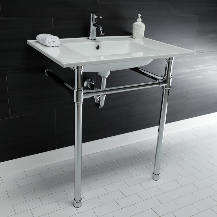 Dreyfuss KVPB3122711 31-Inch Ceramic Console Sink with Stainless Steel Legs (1-Hole), White/Polished Chrome