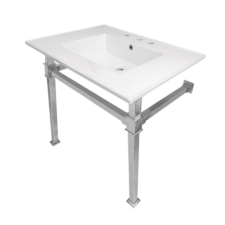 Monarch KVPB31228Q1 31-Inch Ceramic Console Sink with Stainless Steel Legs (8-Inch, 3-Hole), White/Polished Chrome