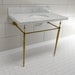 With a beautiful Carrara Marble counter top, this console sink set is a long lasting, durable, and elegant addition to your bathroom. A fabulous alternative where space is limited or tight, making them friendly for the whole family. With different shades and natural designs, otherwise known as veining, no two sinks will be alike. Also for your convenience, anti-slip rubber pads are included with the brass legs to ensure steadiness. Water supply kit, drain assembly, and the faucet are sold separately. Kingston's Carrara Marble tops are polished, but they are not sealed. Polished marble has a shiny surface and resists stains. Natural stone, even when polished, is still somewhat porous and does remain susceptible to etching by acidic compounds like fruit juice, vinegar, some cleaning solvents, etc. For customers that wish to further protect their investment the marble can be sealed. The following is intended solely for informational purposes. Kingston does not warranty nor accept liability for damages or other negative outcomes resulting from any treatment or coating applied to the countertop after purchase, whether applied by the customer or by a third party. For anyone unfamiliar with this nature of project, Kingston recommends consulting an experienced professional in your area. When looking for a sealant product, please be sure to seek a product specifically designed for use on polished marble, granite or other natural stone surfaces. Be sure to always avoid anything containing a citrus ingredient, acid ingredient, tung oil, linseed oil, or other natural oils. These can damage or discolor your marble.