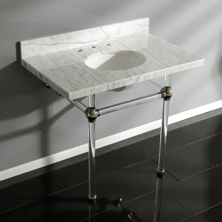 Templeton KVPB3630MA6 36-Inch Carrara Marble Vanity Top with Acrylic Legs (8-Inch, 3-Hole), Carrara Marble White/Polished Nickel