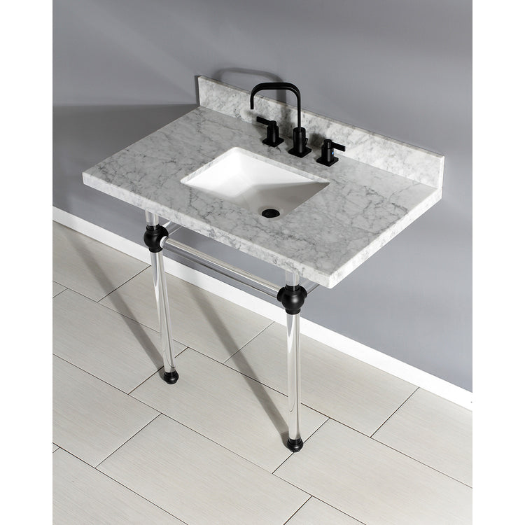 Templeton KVPB3630MASQ0 36-Inch Carrara Marble Vanity Top with Acrylic Legs (8-Inch, 3-Hole), Carrara Marble White/Matte Black