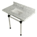 With a beautiful Carrara Marble counter top, this console sink set is a long lasting, durable, and elegant addition to your bathroom. A fabulous alternative where space is limited or tight, making them friendly for the whole family. With different shades and natural designs, otherwise known as veining, no two sinks will be alike. Also for your convenience, anti-slip rubber pads are included with the acrylic legs to ensure steadiness. Water supply kit, drain assembly, and the faucet are sold separately. Kingston's Carrara Marble tops are polished, but they are not sealed. Polished marble has a shiny surface and resists stains. Natural stone, even when polished, is still somewhat porous and does remain susceptible to etching by acidic compounds like fruit juice, vinegar, some cleaning solvents, etc. For customers that wish to further protect their investment the marble can be sealed. The following is intended solely for informational purposes. Kingston does not warranty nor accept liability for damages or other negative outcomes resulting from any treatment or coating applied to the countertop after purchase, whether applied by the customer or by a third party. For anyone unfamiliar with this nature of project, Kingston recommends consulting an experienced professional in your area. When looking for a sealant product, please be sure to seek a product specifically designed for use on polished marble, granite or other natural stone surfaces. Be sure to always avoid anything containing a citrus ingredient, acid ingredient, tung oil, linseed oil, or other natural oils. These can damage or discolor your marble.