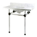 With a beautiful Carrara Marble counter top, this console sink set is a long lasting, durable, and elegant addition to your bathroom. A fabulous alternative where space is limited or tight, making them friendly for the whole family. With different shades and natural designs, otherwise known as veining, no two sinks will be alike. Also for your convenience, anti-slip rubber pads are included with the acrylic legs to ensure steadiness. Water supply kit, drain assembly, and the faucet are sold separately. Kingston's Carrara Marble tops are polished, but they are not sealed. Polished marble has a shiny surface and resists stains. Natural stone, even when polished, is still somewhat porous and does remain susceptible to etching by acidic compounds like fruit juice, vinegar, some cleaning solvents, etc. For customers that wish to further protect their investment the marble can be sealed. The following is intended solely for informational purposes. Kingston does not warranty nor accept liability for damages or other negative outcomes resulting from any treatment or coating applied to the countertop after purchase, whether applied by the customer or by a third party. For anyone unfamiliar with this nature of project, Kingston recommends consulting an experienced professional in your area. When looking for a sealant product, please be sure to seek a product specifically designed for use on polished marble, granite or other natural stone surfaces. Be sure to always avoid anything containing a citrus ingredient, acid ingredient, tung oil, linseed oil, or other natural oils. These can damage or discolor your marble.