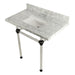 With a beautiful Carrara Marble counter top, this console sink set is a long lasting, durable, and elegant addition to your bathroom. A fabulous alternative where space is limited or tight, making them friendly for the whole family. With different shades and natural designs, otherwise known as veining, no two sinks will be alike. Also for your convenience, anti-slip rubber pads are included with the acrylic legs to ensure steadiness. Water supply kit, drain assembly, and the faucet are sold separately. Kingston's Carrara Marble tops are polished, but they are not sealed. Polished marble has a shiny surface and resists stains. Natural stone, even when polished, is still somewhat porous and does remain susceptible to etching by acidic compounds like fruit juice, vinegar, some cleaning solvents, etc. For customers that wish to further protect their investment the marble can be sealed. The following is intended solely for informational purposes. Kingston does not warranty nor accept liability for damages or other negative outcomes resulting from any treatment or coating applied to the countertop after purchase, whether applied by the customer or by a third party. For anyone unfamiliar with this nature of project, Kingston recommends consulting an experienced professional in your area. When looking for a sealant product, please be sure to seek a product specifically designed for use on polished marble, granite or other natural stone surfaces. Be sure to always avoid anything containing a citrus ingredient, acid ingredient, tung oil, linseed oil, or other natural oils. These can damage or discolor your marble.