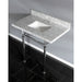With a beautiful Carrara Marble counter top, this console sink set is a long lasting, durable, and elegant addition to your bathroom. A fabulous alternative where space is limited or tight, making them friendly for the whole family. With different shades and natural designs, otherwise known as veining, no two sinks will be alike. Also for your convenience, anti-slip rubber pads are included with the brass legs to ensure steadiness. Water supply kit, drain assembly, and the faucet are sold separately. Kingston's Carrara Marble tops are polished, but they are not sealed. Polished marble has a shiny surface and resists stains. Natural stone, even when polished, is still somewhat porous and does remain susceptible to etching by acidic compounds like fruit juice, vinegar, some cleaning solvents, etc. For customers that wish to further protect their investment the marble can be sealed. The following is intended solely for informational purposes. Kingston does not warranty nor accept liability for damages or other negative outcomes resulting from any treatment or coating applied to the countertop after purchase, whether applied by the customer or by a third party. For anyone unfamiliar with this nature of project, Kingston recommends consulting an experienced professional in your area. When looking for a sealant product, please be sure to seek a product specifically designed for use on polished marble, granite or other natural stone surfaces. Be sure to always avoid anything containing a citrus ingredient, acid ingredient, tung oil, linseed oil, or other natural oils. These can damage or discolor your marble.