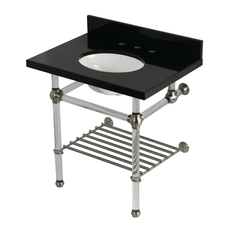 Kingston Tulare KVPK3030KAB8 - Templeton 30-Inch Black Granite Console Sink with Acrylic Legs and Shelf (8-Inch, 3-Hole), Black Granite/Brushed Nickel
