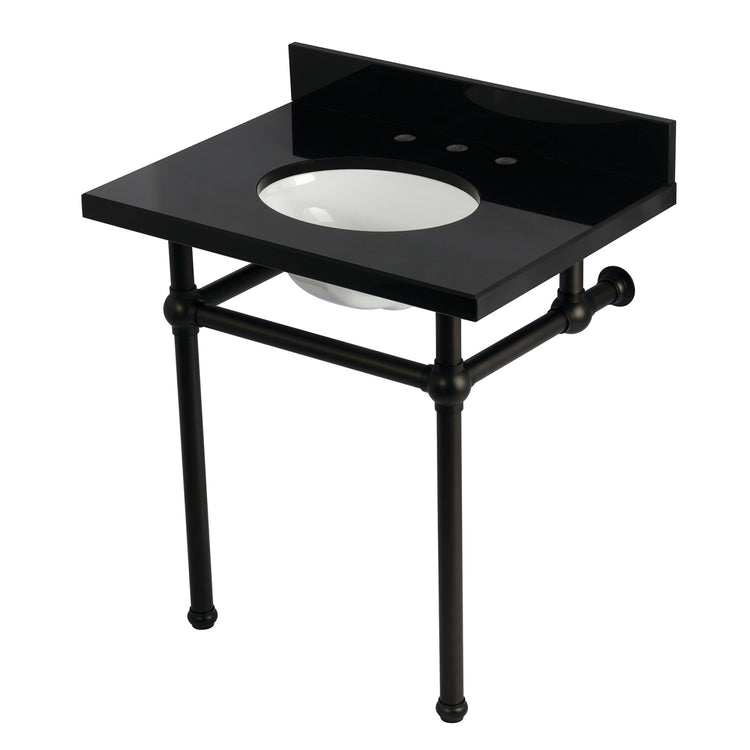 Kingston Heirloom KVPK3030KB5 - Templeton 30-Inch Black Granite Console Sink with Brass Legs (8-Inch, 3-Hole), Black Granite/Oil Rubbed Bronze