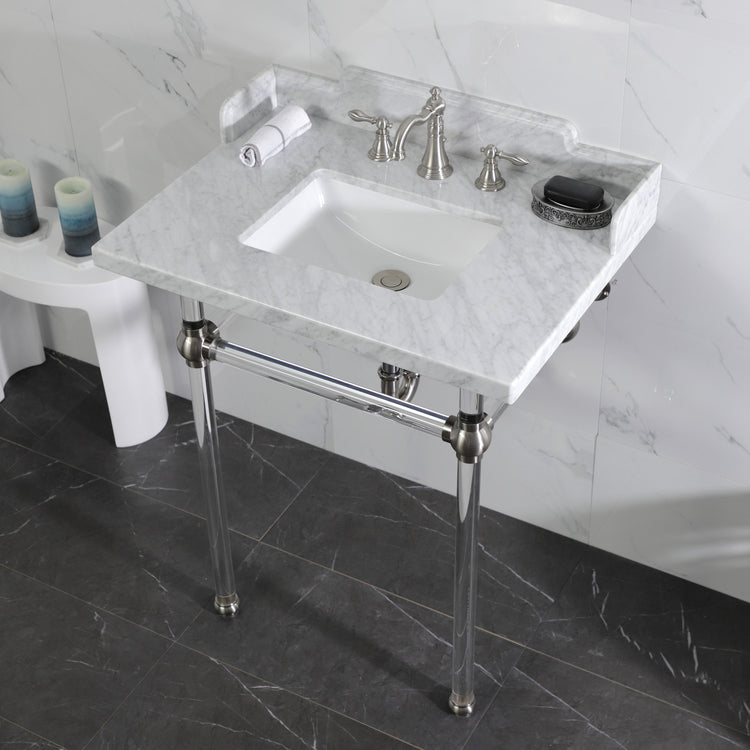 Pemberton LMS30MASQ8 30-Inch Carrara Marble Console Sink with Acrylic Legs (8-Inch, 3-Hole), Carrara Marble White/Brushed Nickel