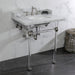 With a beautiful Carrara Marble counter top, this console sink set is a long lasting, durable, and elegant addition to your bathroom. A fabulous alternative where space is limited or tight, making them friendly for the whole family. With different shades and natural designs, otherwise known as veining, no two sinks will be alike. Also for your convenience, anti-slip rubber pads are included with the acrylic legs to ensure steadiness. Water supply kit, drain assembly, and the faucet are sold separately. Kingston's Carrara Marble tops are polished, but they are not sealed. Polished marble has a shiny surface and resists stains. Natural stone, even when polished, is still somewhat porous and does remain susceptible to etching by acidic compounds like fruit juice, vinegar, some cleaning solvents, etc. For customers that wish to further protect their investment the marble can be sealed. The following is intended solely for informational purposes. Kingston does not warranty nor accept liability for damages or other negative outcomes resulting from any treatment or coating applied to the countertop after purchase, whether applied by the customer or by a third party. For anyone unfamiliar with this nature of project, Kingston recommends consulting an experienced professional in your area. When looking for a sealant product, please be sure to seek a product specifically designed for use on polished marble, granite or other natural stone surfaces. Be sure to always avoid anything containing a citrus ingredient, acid ingredient, tung oil, linseed oil, or other natural oils. These can damage or discolor your marble.
