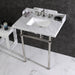 With a beautiful Carrara Marble counter top, this console sink set is a long lasting, durable, and elegant addition to your bathroom. A fabulous alternative where space is limited or tight, making them friendly for the whole family. With different shades and natural designs, otherwise known as veining, no two sinks will be alike. Also for your convenience, anti-slip rubber pads are included with the brass legs to ensure steadiness. Water supply kit, drain assembly, and the faucet are sold separately. Kingston's Carrara Marble tops are polished, but they are not sealed. Polished marble has a shiny surface and resists stains. Natural stone, even when polished, is still somewhat porous and does remain susceptible to etching by acidic compounds like fruit juice, vinegar, some cleaning solvents, etc. For customers that wish to further protect their investment the marble can be sealed. The following is intended solely for informational purposes. Kingston does not warranty nor accept liability for damages or other negative outcomes resulting from any treatment or coating applied to the countertop after purchase, whether applied by the customer or by a third party. For anyone unfamiliar with this nature of project, Kingston recommends consulting an experienced professional in your area. When looking for a sealant product, please be sure to seek a product specifically designed for use on polished marble, granite or other natural stone surfaces. Be sure to always avoid anything containing a citrus ingredient, acid ingredient, tung oil, linseed oil, or other natural oils. These can damage or discolor your marble.