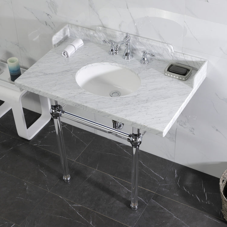 Pemberton LMS3630MA1 36-Inch Carrara Marble Console Sink with Acrylic Legs (8-Inch, 3-Hole), Carrara Marble White/Polished Chrome