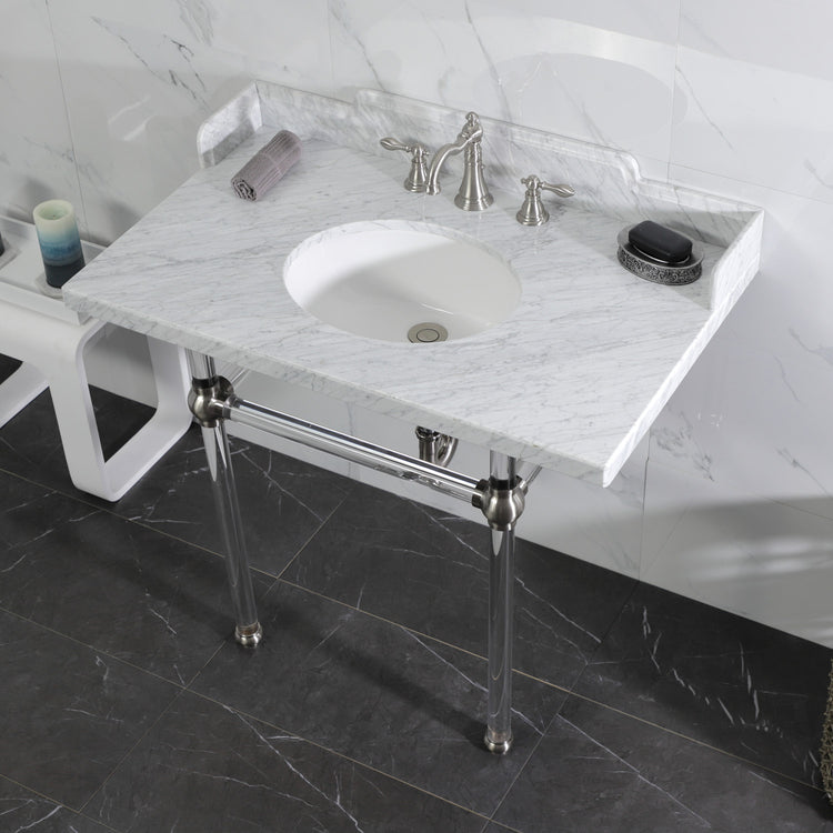 Pemberton LMS3630MA8 36-Inch Carrara Marble Console Sink with Acrylic Legs (8-Inch, 3-Hole), Carrara Marble White/Brushed Nickel