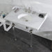 With a beautiful Carrara Marble counter top, this console sink set is a long lasting, durable, and elegant addition to your bathroom. A fabulous alternative where space is limited or tight, making them friendly for the whole family. With different shades and natural designs, otherwise known as veining, no two sinks will be alike. Also for your convenience, anti-slip rubber pads are included with the acrylic legs to ensure steadiness. Water supply kit, drain assembly, and the faucet are sold separately. Kingston's Carrara Marble tops are polished, but they are not sealed. Polished marble has a shiny surface and resists stains. Natural stone, even when polished, is still somewhat porous and does remain susceptible to etching by acidic compounds like fruit juice, vinegar, some cleaning solvents, etc. For customers that wish to further protect their investment the marble can be sealed. The following is intended solely for informational purposes. Kingston does not warranty nor accept liability for damages or other negative outcomes resulting from any treatment or coating applied to the countertop after purchase, whether applied by the customer or by a third party. For anyone unfamiliar with this nature of project, Kingston recommends consulting an experienced professional in your area. When looking for a sealant product, please be sure to seek a product specifically designed for use on polished marble, granite or other natural stone surfaces. Be sure to always avoid anything containing a citrus ingredient, acid ingredient, tung oil, linseed oil, or other natural oils. These can damage or discolor your marble.