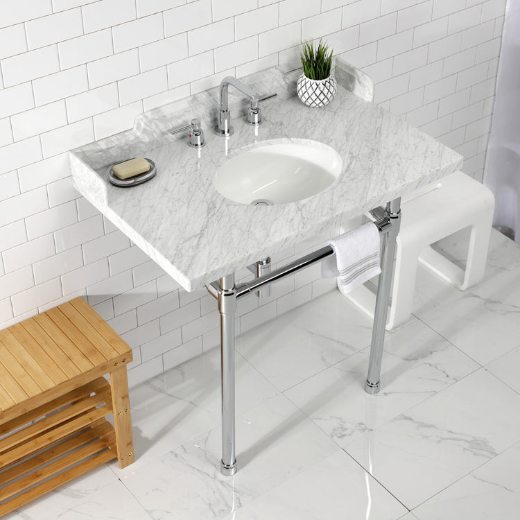 Dreyden LMS36M81ST 36-Inch Carrara Marble Console Sink with Stainless Steel Legs (8-Inch, 3-Hole), Carrara Marble White/Polished Chrome