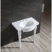 From Kingston Brass, this basin console with pedestal was designed with a striking design that will make almost any interior stand out. Constructed from solid ceramic, appreciate the finished glow that the console gives off. Installation of the console is on two legs and is mounted on the wall of the interior room. The console comes with a generous Bowl dimensions, while the overall console dimensions are (L)31 inch x (W)21-5/8 inch x (H)32-11/16 inch and is included with pre-drilled holes perfect for a 3-hole faucet install. The console's smooth texture allows for easy-to-clean and easy-to-manage maintenance. The console is also finished with a sleek white color that brings out the texture and the design of the ceramic material.