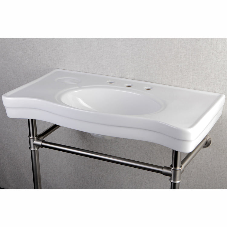 Imperial VPB1368ST 36-Inch Ceramic Console Sink with Stainless Steel Legs (8-Inch, 3-Hole), White/Brushed Nickel