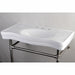 With a beautiful ceramic counter top, this console sink set is a long lasting, durable, and elegant addition to your bathroom. A fabulous alternative where space is limited or tight, making them friendly for the whole family. The pristine, stain-resistant surface and glistening finish make for a very sturdy fixture that is easily maintained. Also for your convenience, anti-slip rubber pads are included with the stainless steel legs to ensure steadiness. Water supply kit, drain assembly, and the faucet are sold separately.