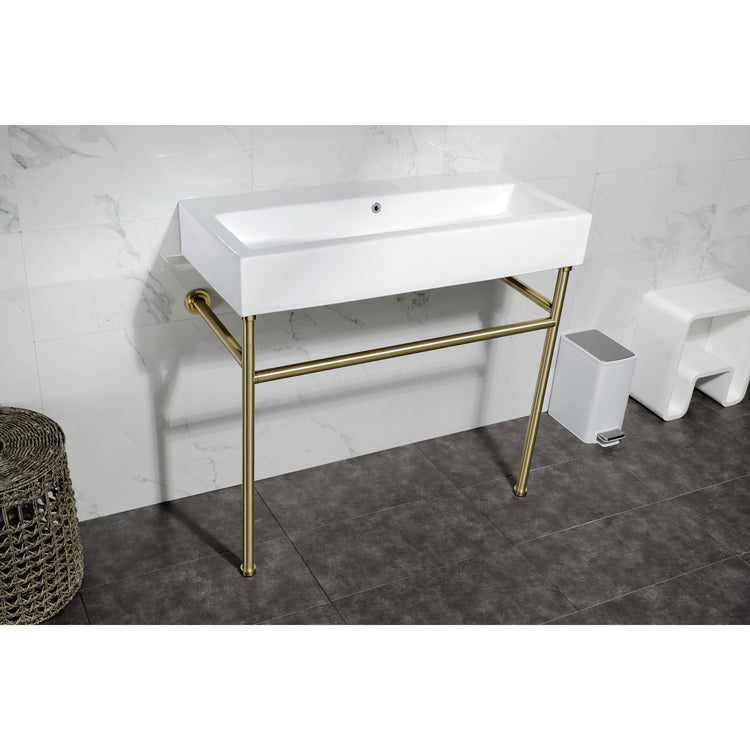 New Haven VPB3917H7ST 39-Inch Porcelain Console Sink with Stainless Steel Legs, White/Brushed Brass