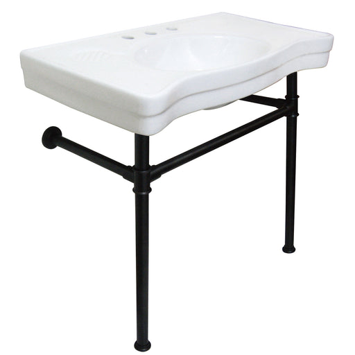 Kingston BrassImperial VPB1360ST 36-Inch Ceramic Console Sink with Stainless Steel Legs (8-Inch, 3-Hole), White/Matte Black With a beautiful ceramic counter t...