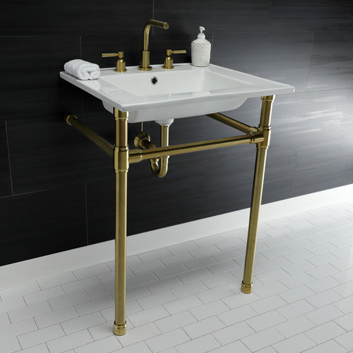 Kingston BrassDreyfuss KVPB25227W87 25-Inch Ceramic Console Sink with Stainless Steel Legs (8-Inch, 3-Hole), White/Brushed Brass With a beautiful ceramic coun...