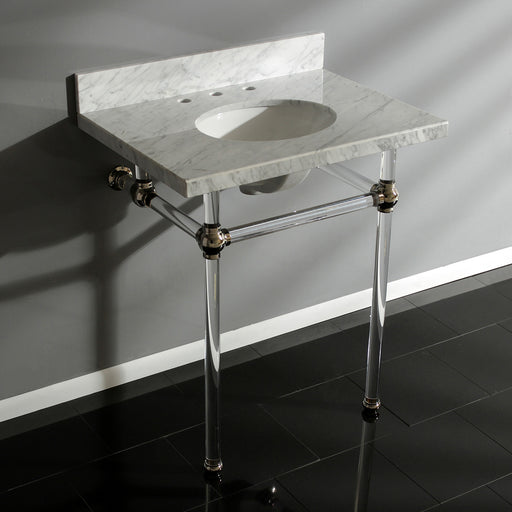 Kingston BrassTempleton KVPB30MA6 30-Inch Carrara Marble Vanity Top with Acrylic Legs (8-Inch, 3-Hole), Carrara Marble White/Polished Nickel With a beautiful ...