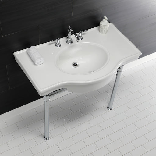 Kingston BrassTempleton VPB1371ST 37-Inch Ceramic Console Sink with Stainless Steel Legs (8-Inch, 3-Hole), White/Polished Chrome With a beautiful ceramic coun...