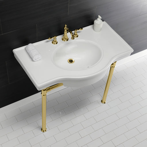 Kingston BrassTempleton VPB1372ST 37-Inch Ceramic Console Sink with Stainless Steel Legs (8-Inch, 3-Hole), White/Polished Brass With a beautiful ceramic count...