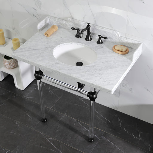 Kingston BrassTempleton KVPB36MASQ6 36-Inch Carrara Marble Vanity Top with Acrylic Legs (8-Inch, 3-Hole), Carrara Marble White/Polished Nickel With a beautifu...