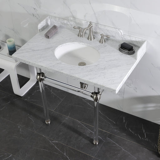 Kingston BrassPemberton LMS3630MA8 36-Inch Carrara Marble Console Sink with Acrylic Legs (8-Inch, 3-Hole), Carrara Marble White/Brushed Nickel With a beautifu...