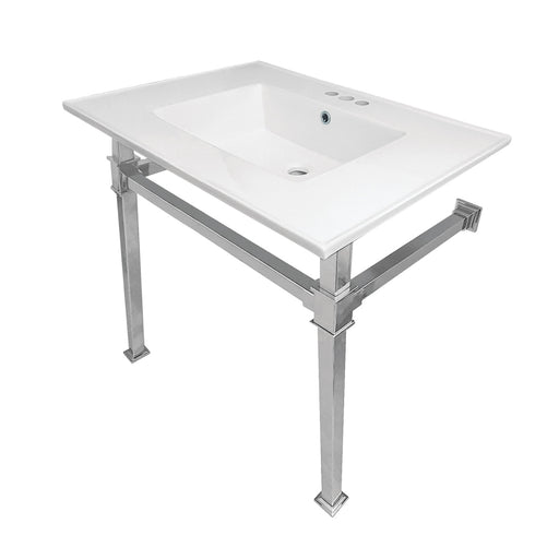 Kingston BrassMonarch KVPB31224Q1 31-Inch Ceramic Console Sink with Stainless Steel Legs (4-Inch, 3-Hole), White/Polished Chrome With a beautiful ceramic coun...